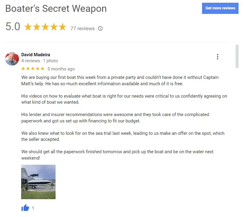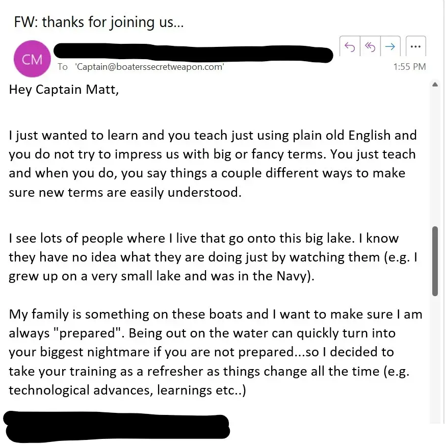 Maybe you've never even heard of Capt. Matt or maybe, you're not one of the 300,000 monthly viewers watching the over 200 videos on his Boat Buyer's Secret Weapon YouTube Channels. Maybe you've never even invested in a valuable training like this online before.
