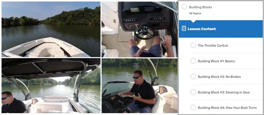 You'll have access to these video lessons (that can be viewed on your phone while on your boat in the water) as you gain total control of your boat in any situation. At only $247 this is the cheapest investment you'll make in boating... and it gives you the skills you need to handle your boat with confidence, sky-rocketing your boating fun.